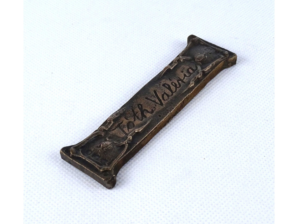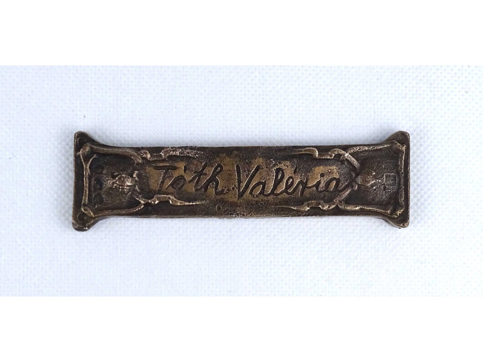 Régi, egyoldalas, a művésznő által készített bronz plakett, névtábla. Rajta felirat: TÓTH VALÉRIA