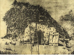 Keretezett Munkácsy rajz nyomat - Kunyhó tanulmányrajz 53 x 43 cm