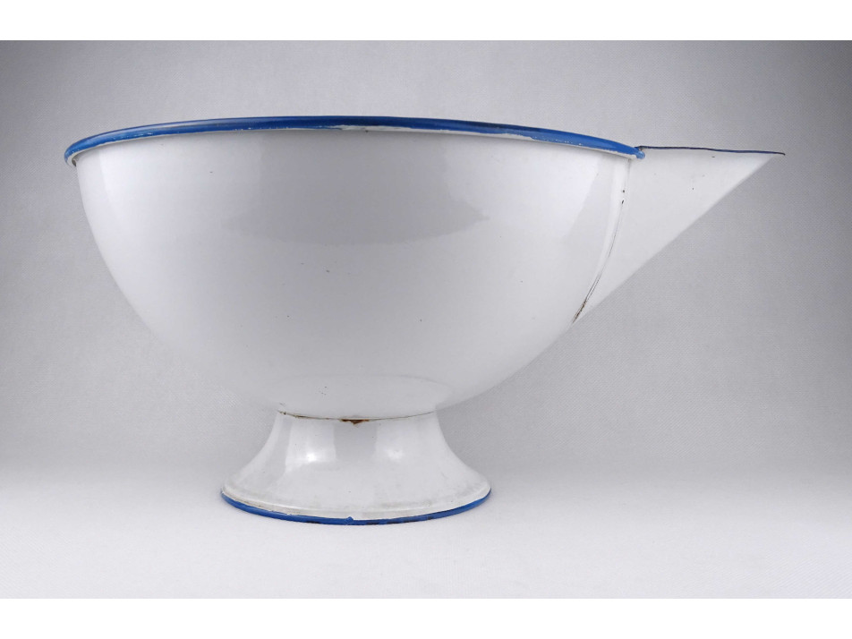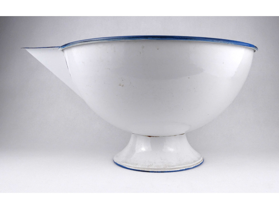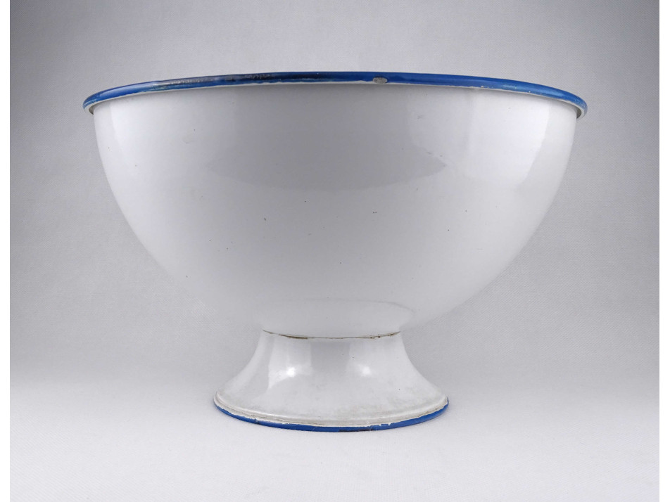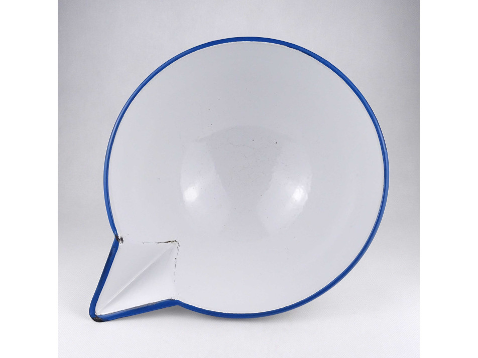 Régi, hibátlan állapotú, nagyméretű, zománcozott fém talpas keverőtál tál, gyógyszerész tál, patika edény, labor felszerelés.