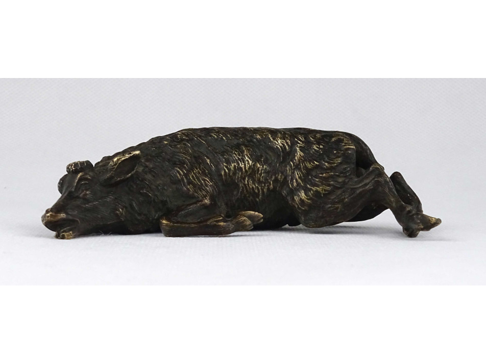 Antik szarvast ábrázoló, részletes, élethű bronz szobor. A két szarv hiányzik.
