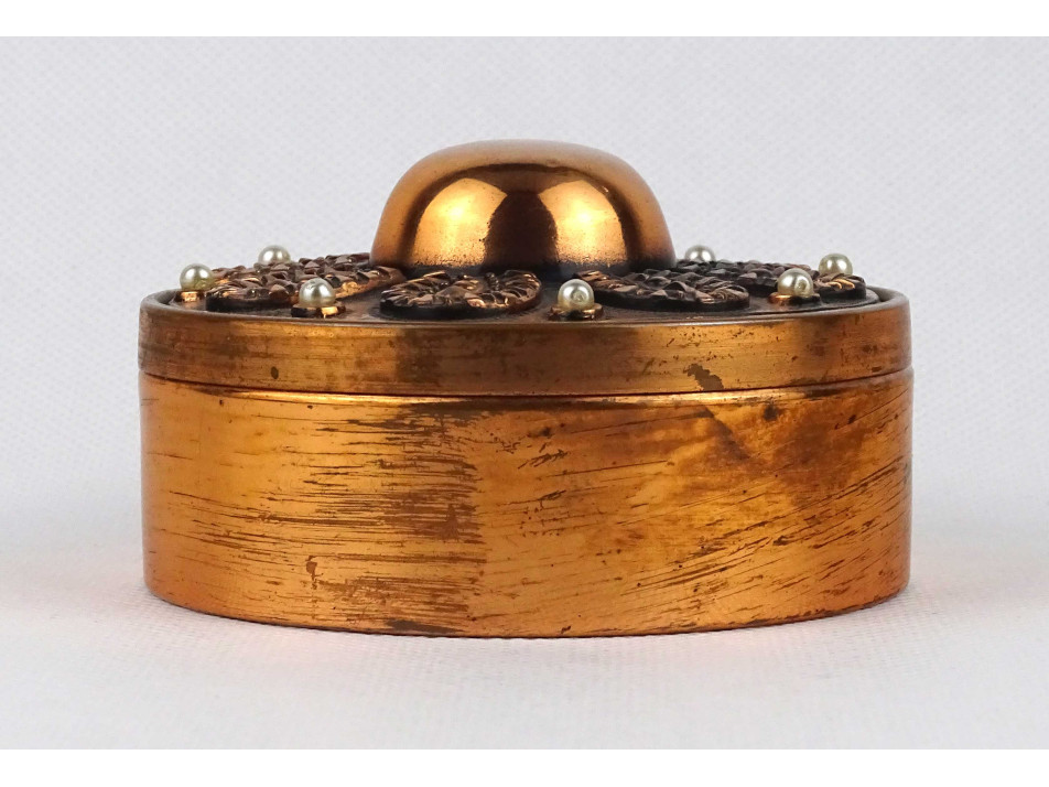 Iparművészeti LIGNIFER kördoboz ékszertartó díszdoboz 9.3 cm