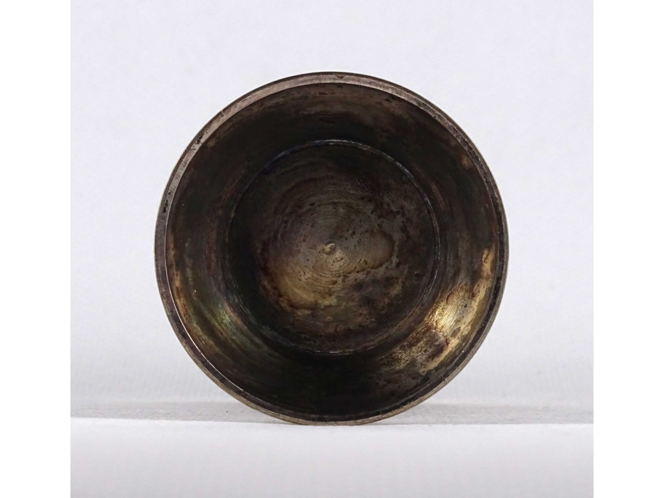 Régi ezüstözött réz bordás talpas kis váza 11 cm