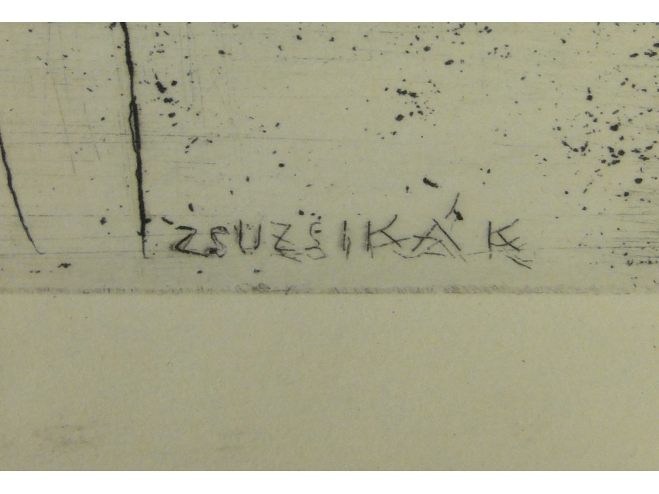 Nagyméretű dupla különálló rézkarc nyomat egy lapon, jelezve jobbra lent KUTASSY IMRE FERENC , balra lent ZSUZSIKÁK .