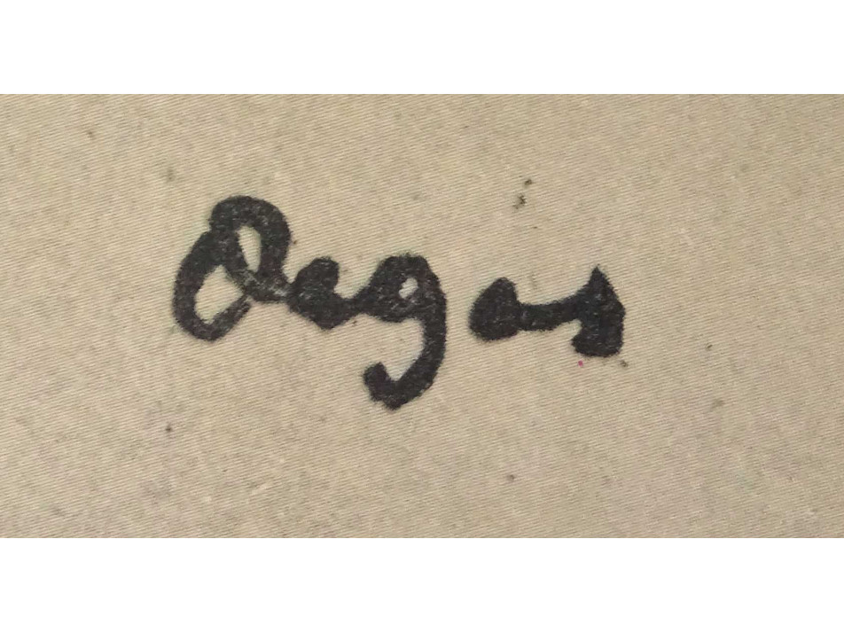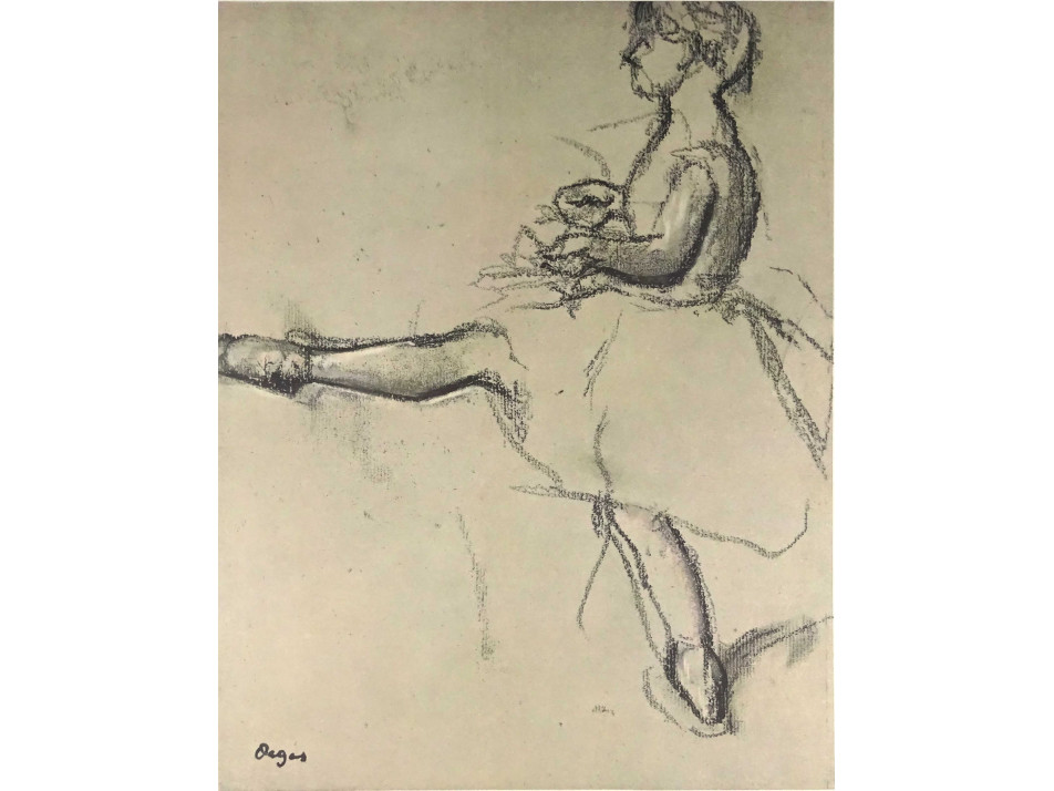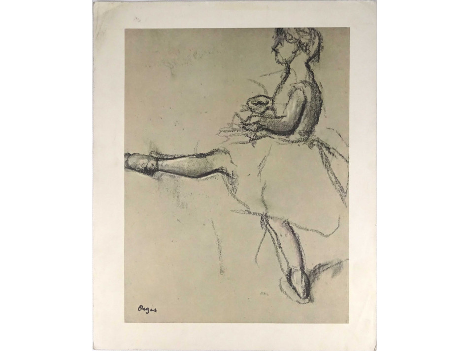Hibátlan állapotú, színes reprodukció, balerinát ábrásoló EDGAR DEGAS (1834 - 1917) vázlatrajz . Jelzés balra lent: DEGAS