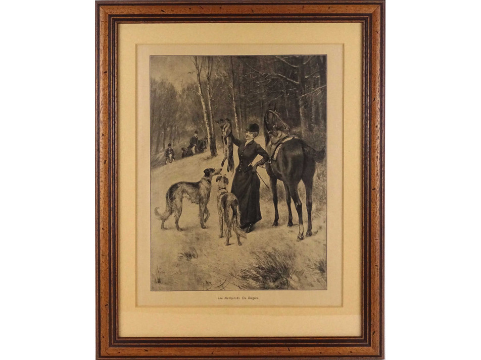 Mucharski : Die Siegerin vadászjelenet (A győztes) antik vadász nyomat 30 x 23 cm