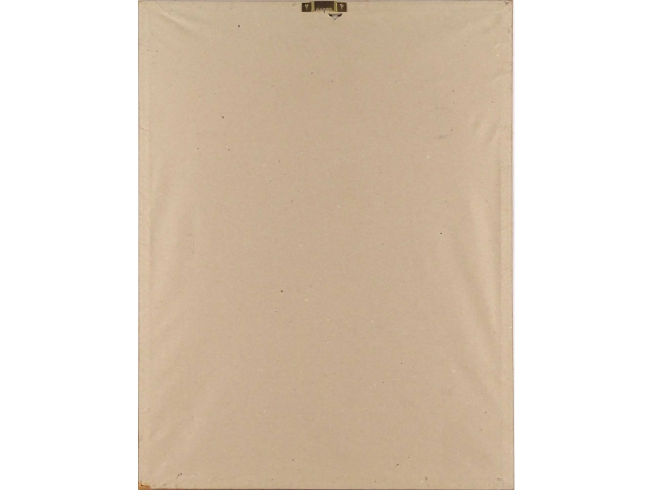 Színezett papír rézkarc, paszpartuzva, üveglap mögött, modern vékony fakeretben.