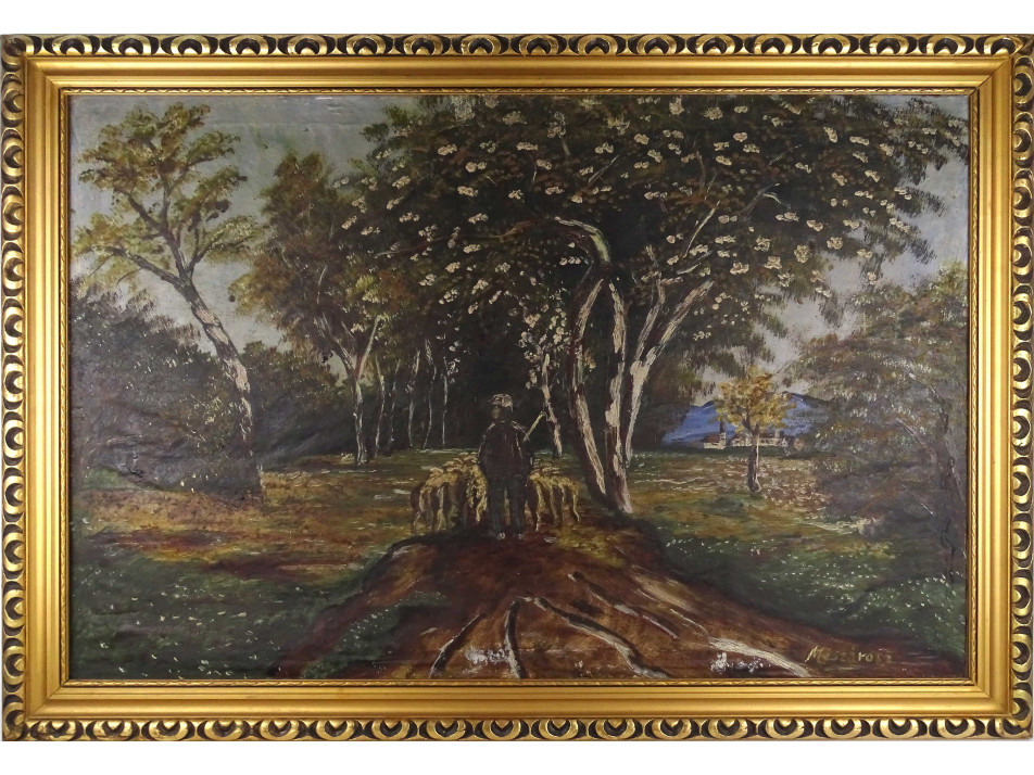 Régi, jelzett, olaj vászon festmény, hibátlan állapotú, díszes, aranyozott keretben.