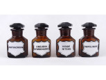 Régi kisméretű barna gyógyszertári patika üveg tégely csomag 4 darab 8.5 cm