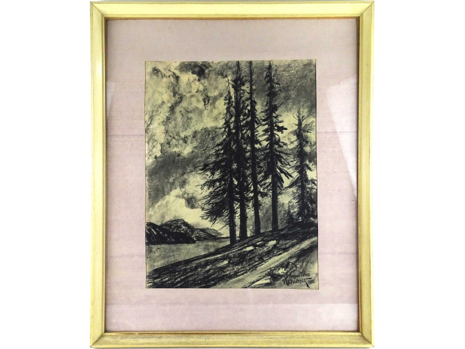 Papír szénrajz üveglap mögött, paszpartuban, világos léckeretben. Akasztási lehetőséggel rendelkezik.