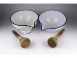 Régi zománcozott patika eszköz gyógyszertári keverőtál pár