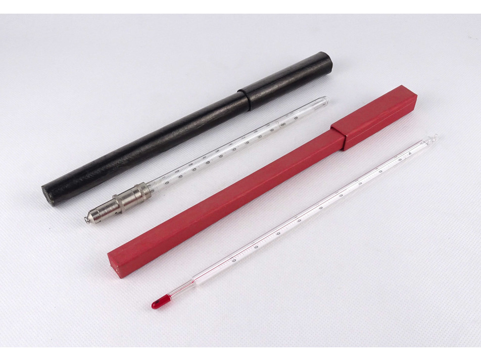 Régi laboratóriumi hőmérő eredeti tokjában 2 darab