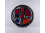 Nagyméretű mid century Benkő Ilona samot falitál, kerámia tál 32.5 cm