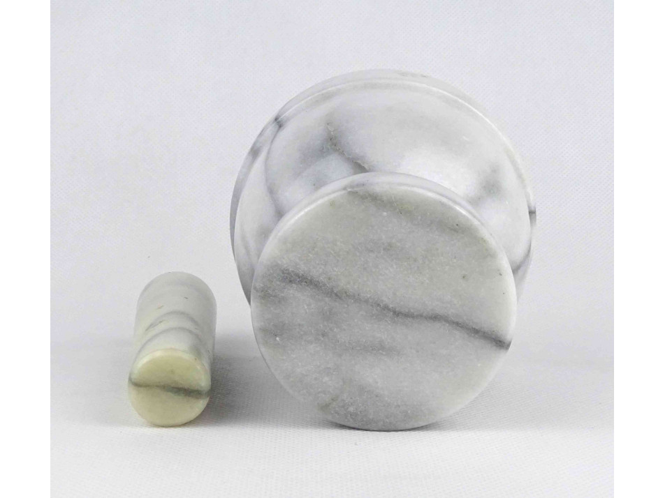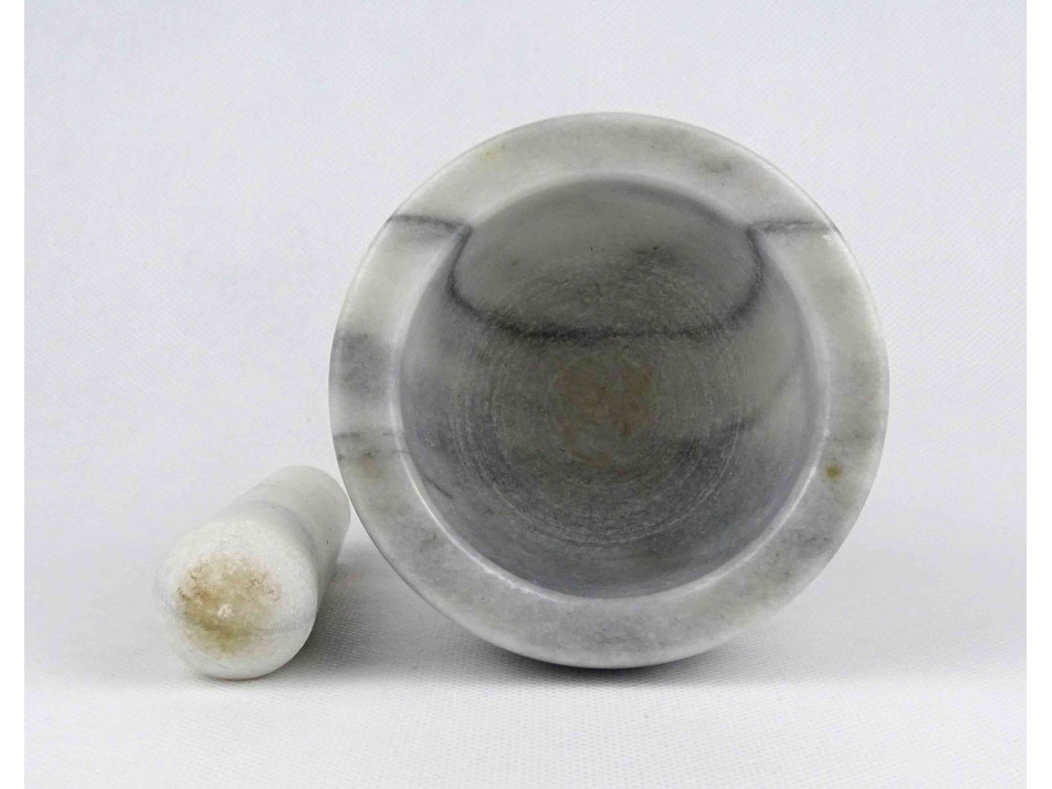 Régi, hibátlan állapotú, vastagfalú márvány mozsár törővel. Dísznek és használatra egyaránt alkalmas.