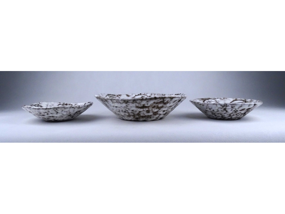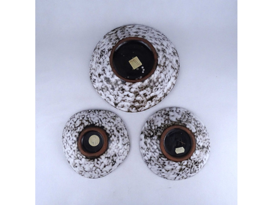 Retro, hibátlan állapotú, nagyméretű, fekete - fehér színű, márványos jellegű csigás mázzal díszített, jelzetlen hódmezővásárhelyi kerámia tál csomag, három darab egyben.