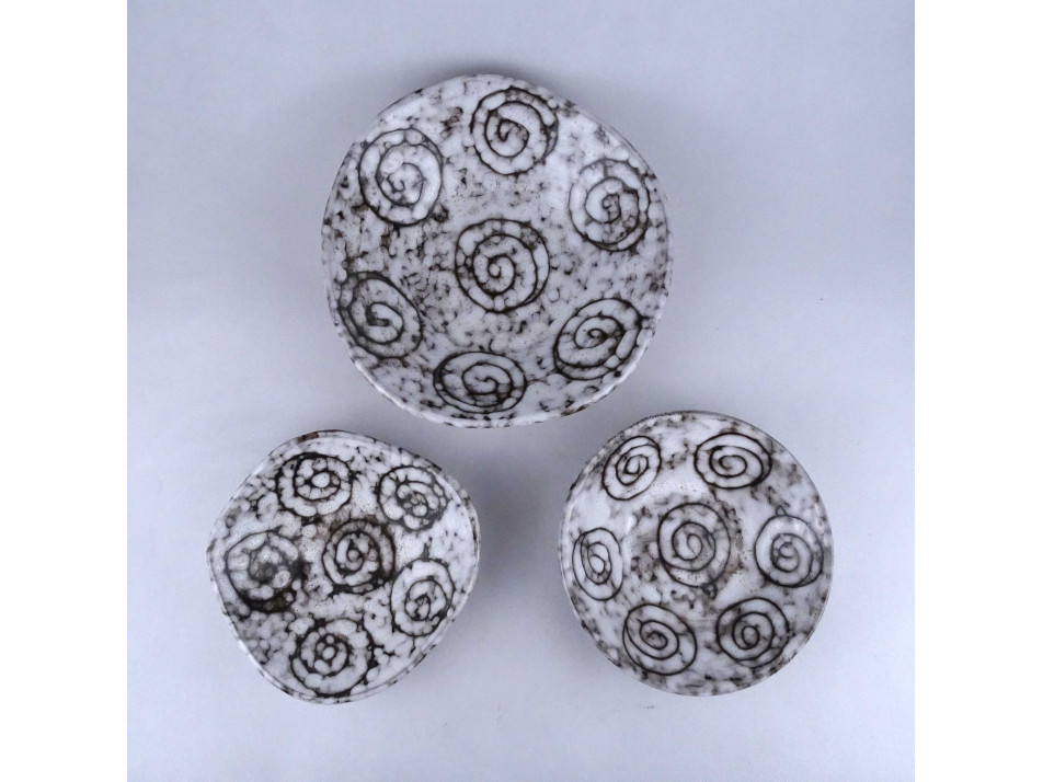 Retro fekete - fehér mázas csigás hódmezővásárhelyi kerámia tál csomag 3 darab