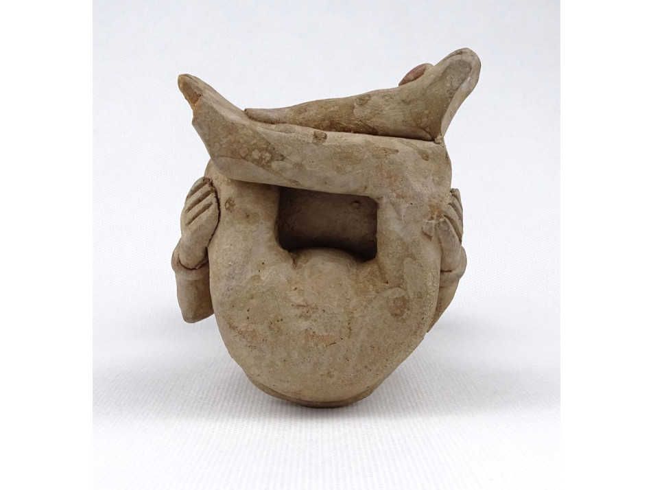 Régi, szép állapotú, ember alakú, különleges, népi cserépsíp, hangszer.