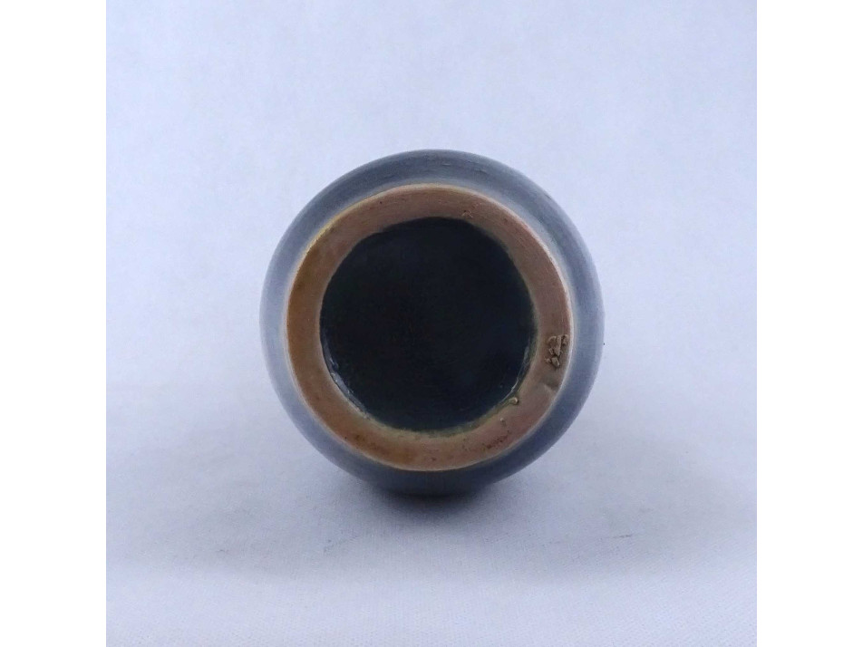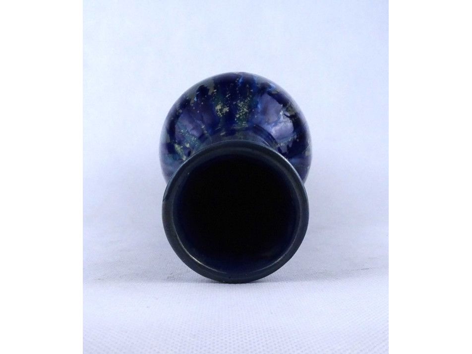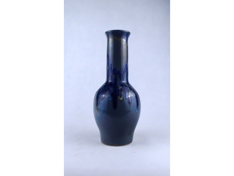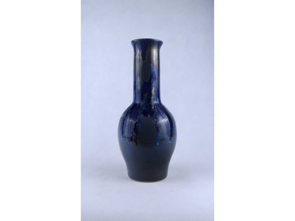 Retro, hibátlan állapotú jelzetlen iparművészeti, csurgatott, kék - szürke mázas kerámia váza, díszváza.