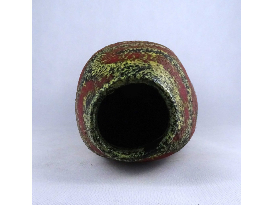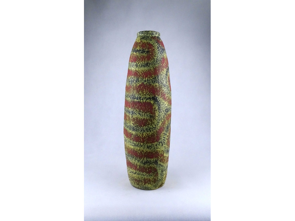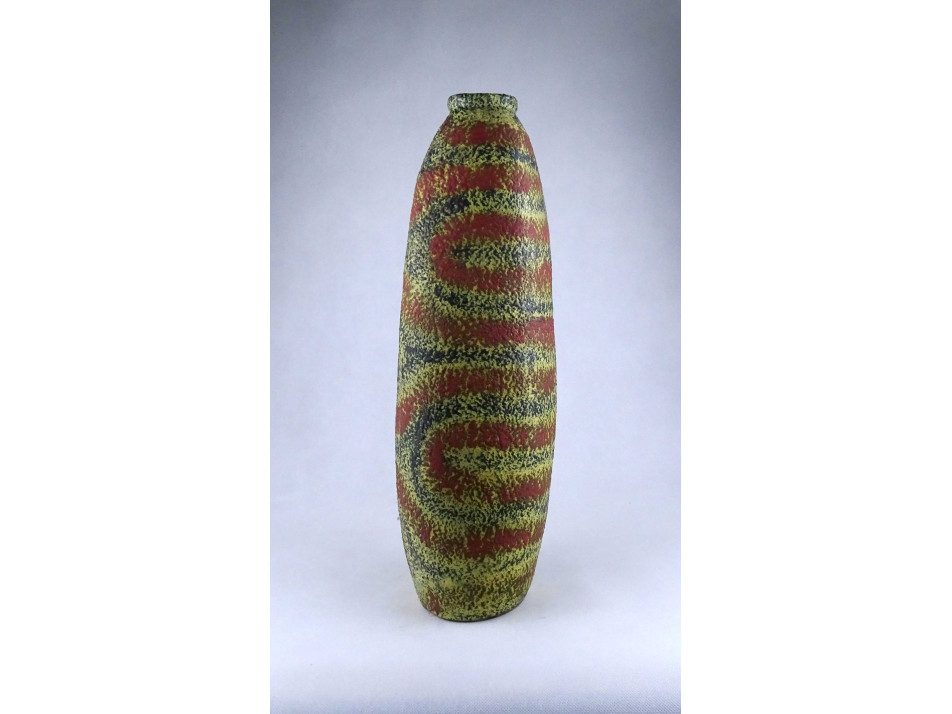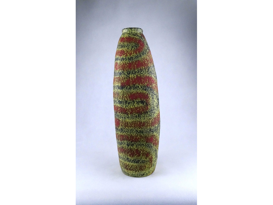 Retro Pesthidegkút sárga zöld piros mázas kerámia padlóváza 48.5 cm
