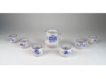 Régi kék mázas kerámia pálinkás butella 18 cm