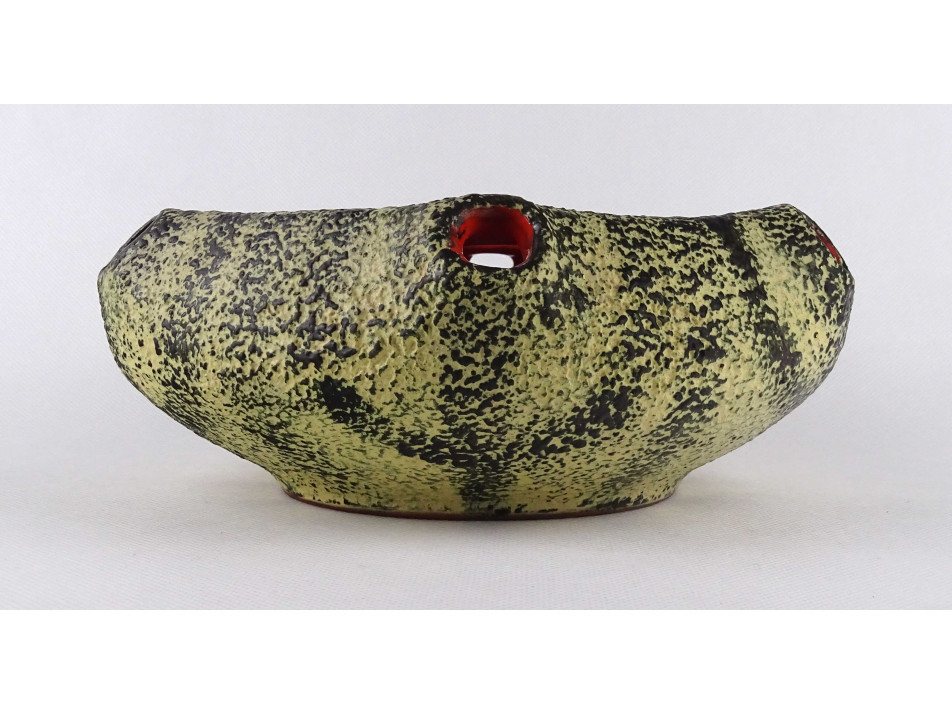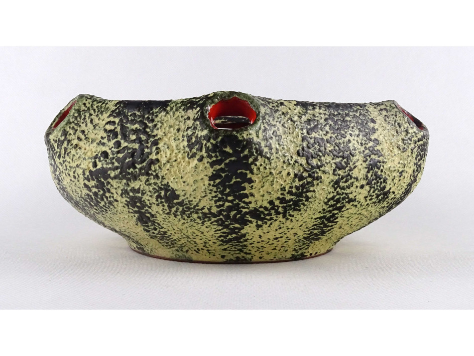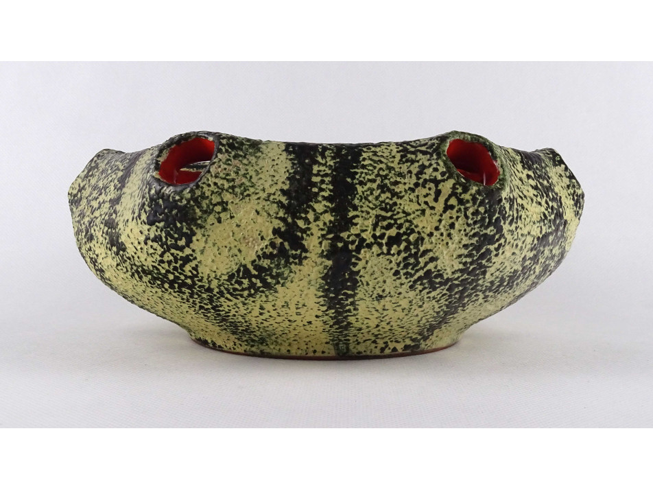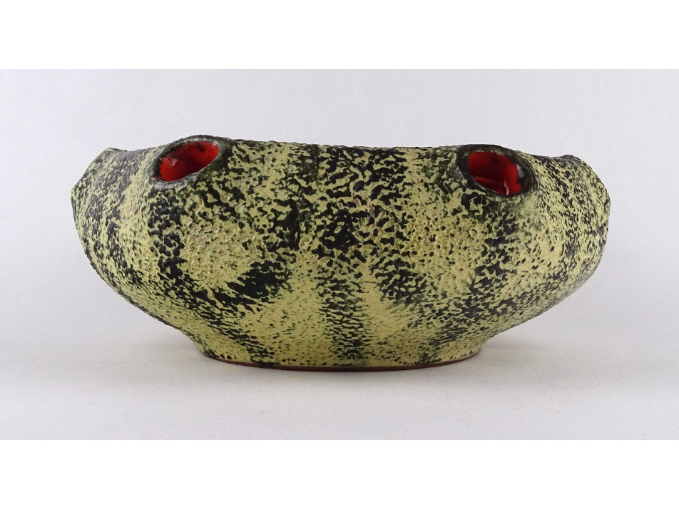 Retro Pesthidegkút sárga zöld piros kerámia asztalközép vagy kaspó 25 cm