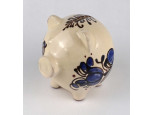 Régi, mázas, népi motívumos kerámia malacpersely