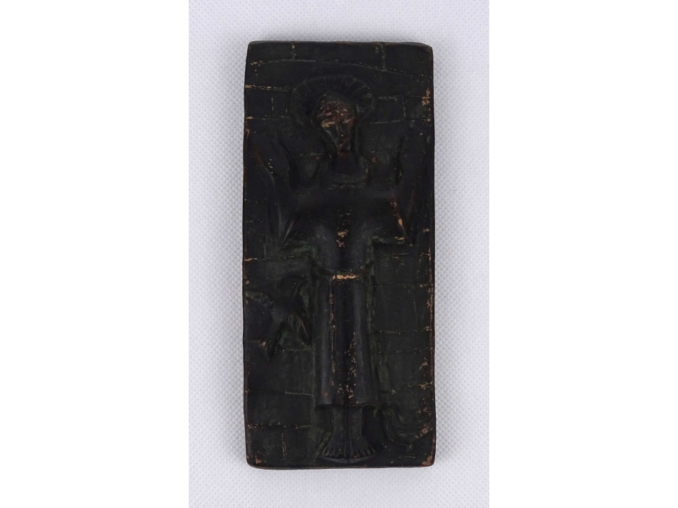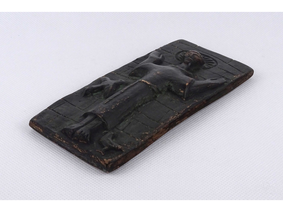 Régi, jelzetlen, falra akasztási lehetőséggel rendelkező, Szent Ferencet ábrázoló kerámia falidísz. A plakett kopottas lásd fotó.