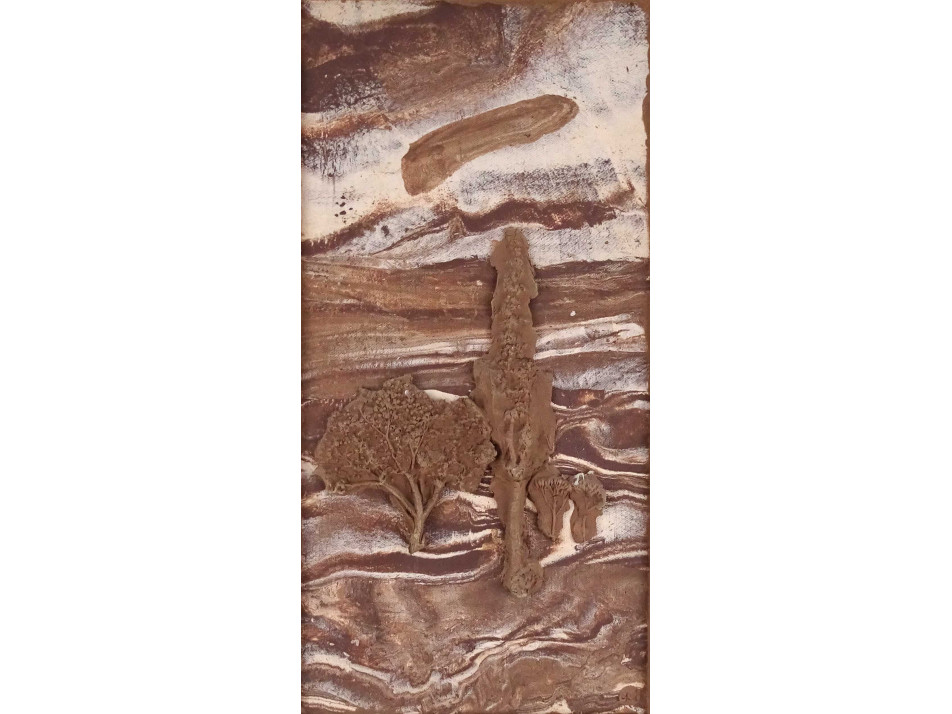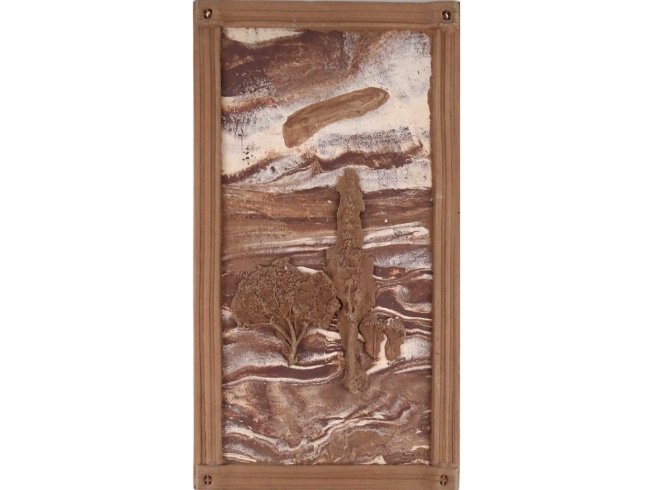 Hibátlan állapotú, jelzett, fákat ábrázoló, domború kerámia falikép, falra akasztási lehetőséggel.