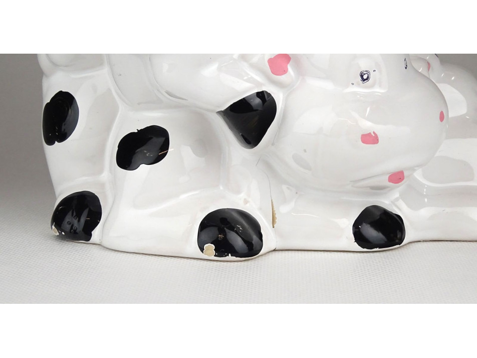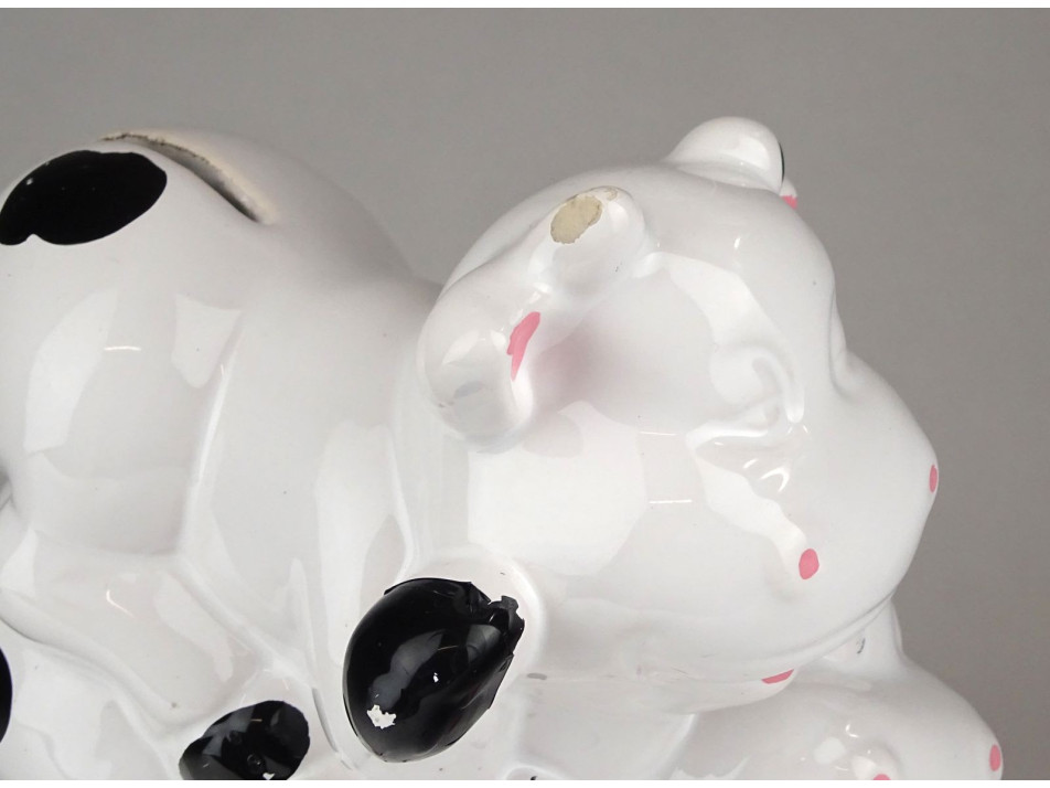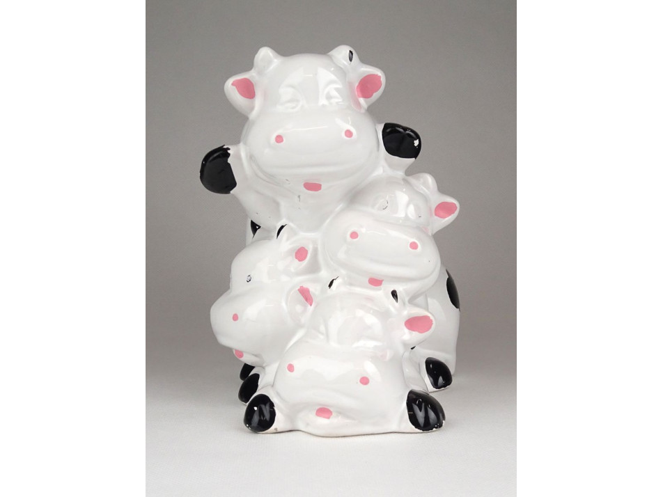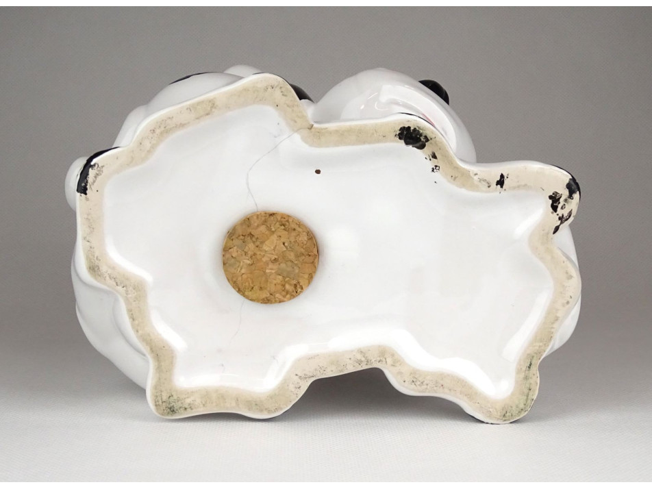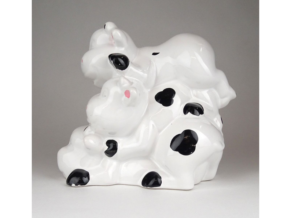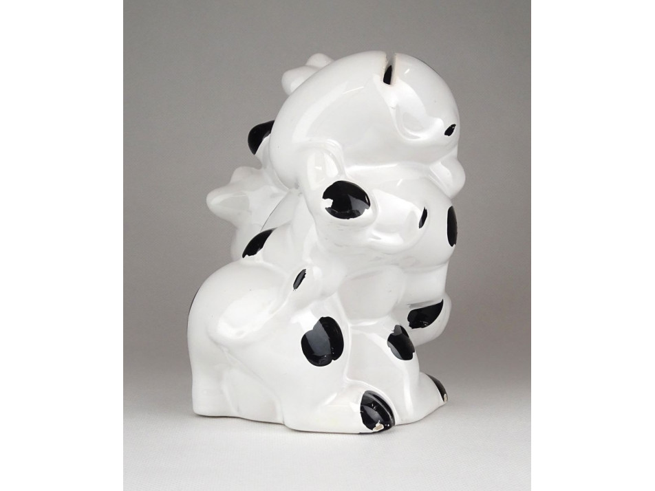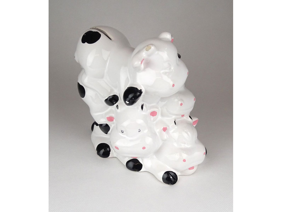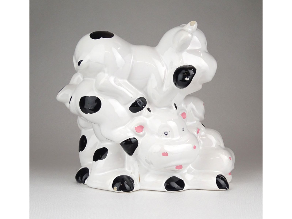 Szép állapotú, nagy méretű kerámia persely alján parafadugóval. Négy boci egymás hegyén-hátán. A legfelső fülén mázhiba és a testen mázrepedés található, lásd fotó.