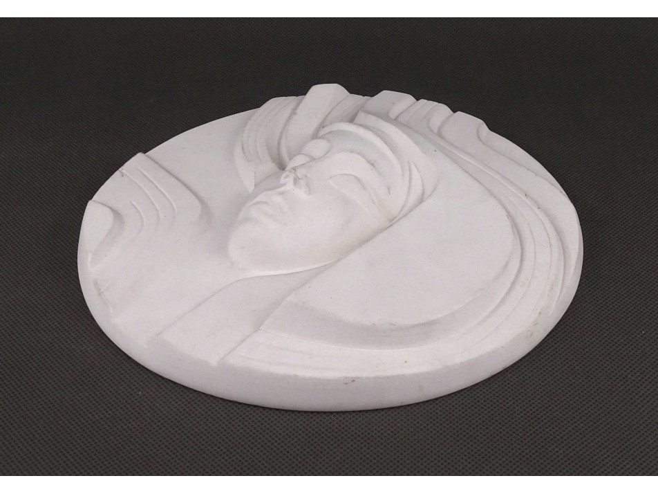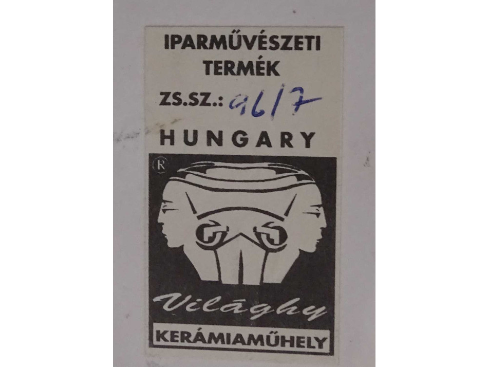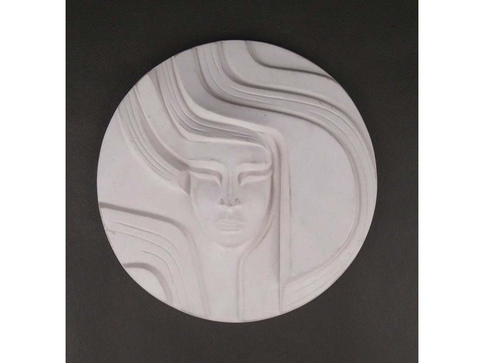 Hibátlan állapotú, női arcot formáló, fehér kerámia falidísz, iparművészeti kerámia dombormű. Alján címke: IPARMŰVÉSZETI TERMÉK HUNGARY VILÁGHY KERÁMIAMŰHELY