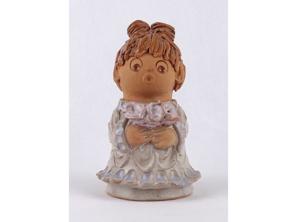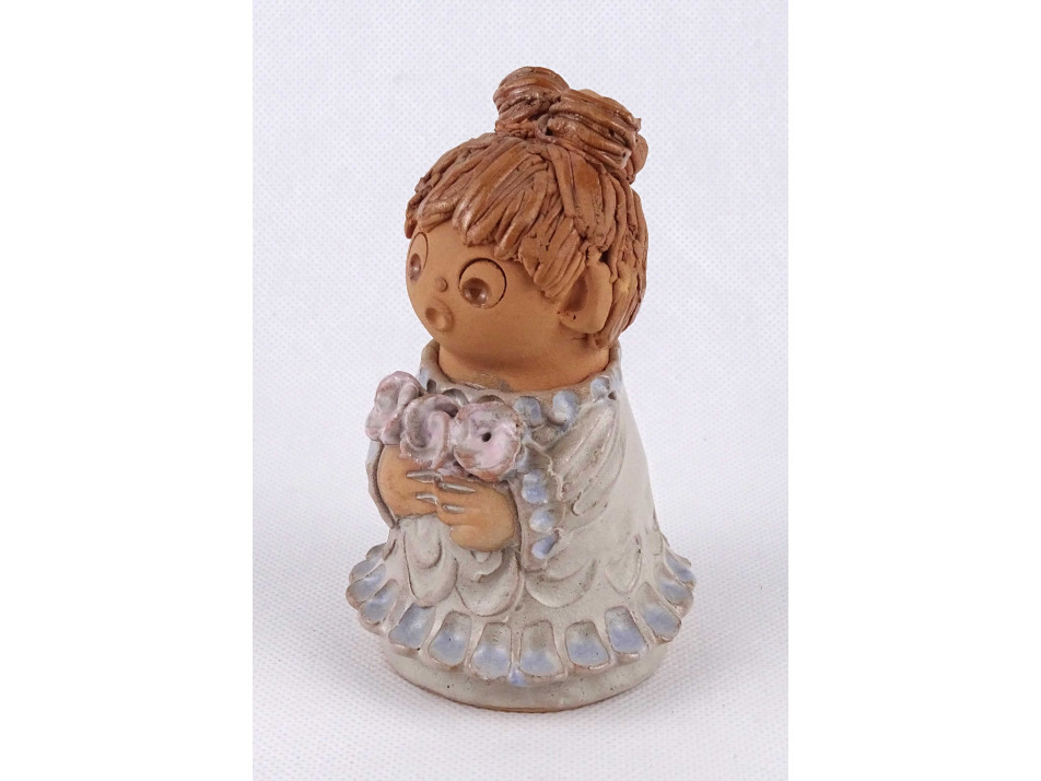 Antalfiné Szente Katalin : Kislány virágokkal kerámia figura 12.7 cm