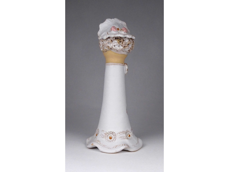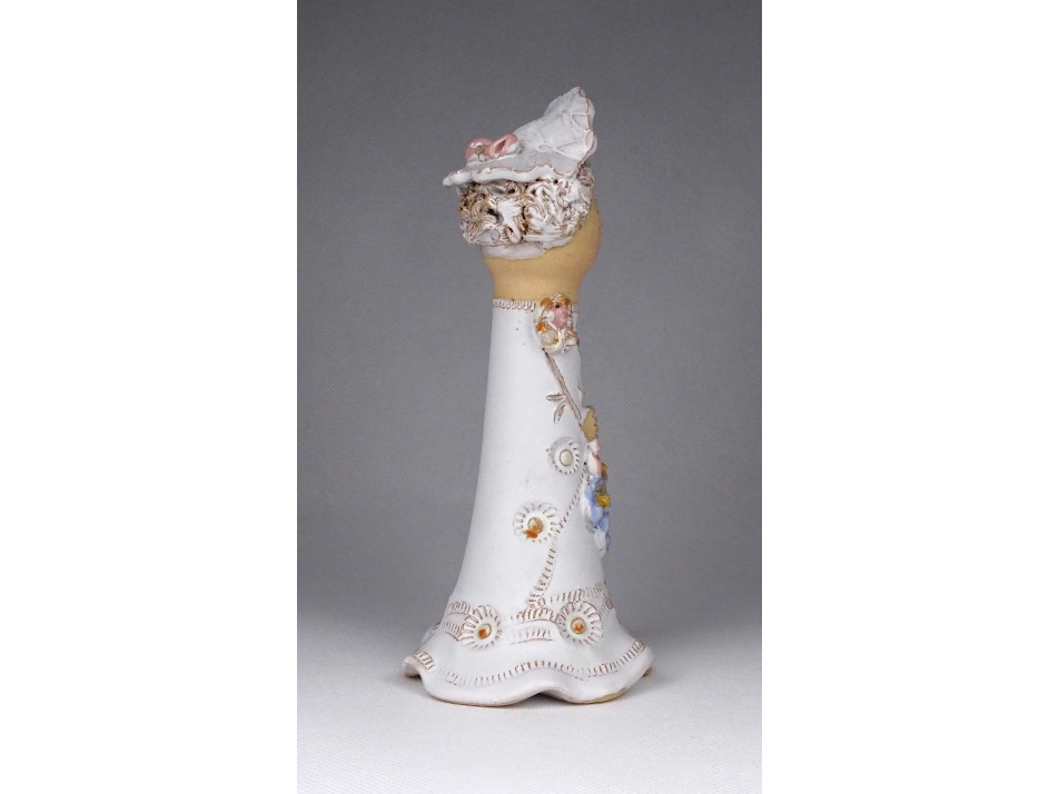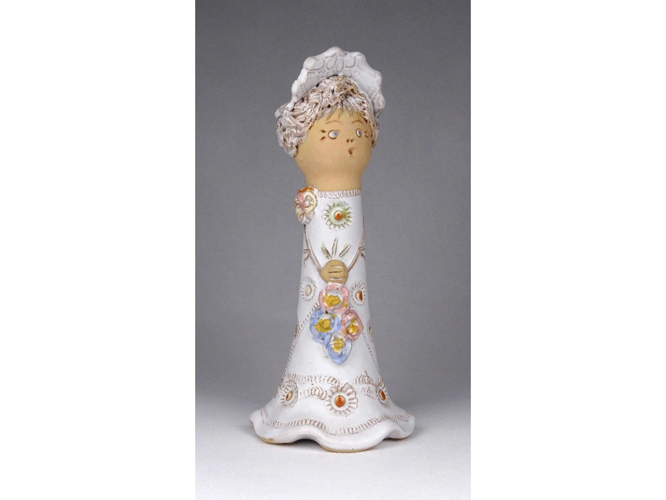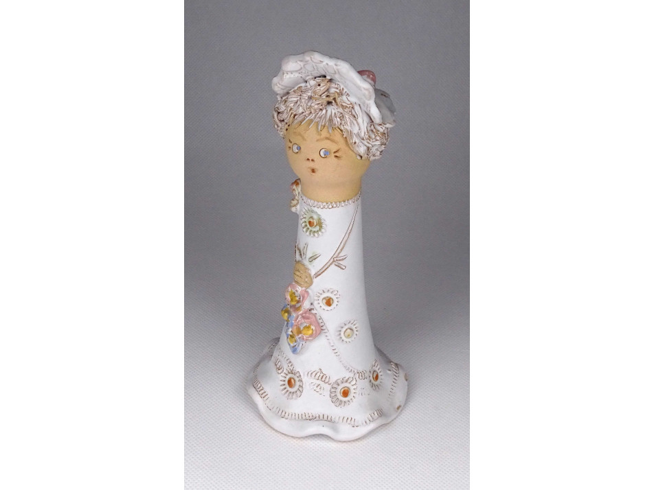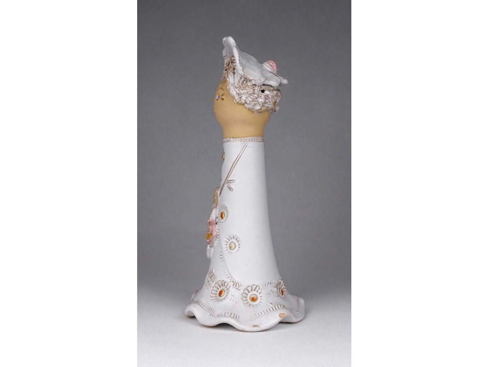 Győrbíró Enikő: fiatal lány kalapban csokrokkal kerámia figura 19 cm