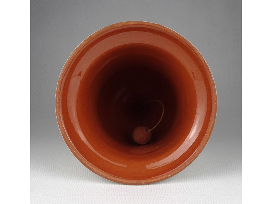 Nagyméretű, karácsonyi mázas, cserép csengő, csengettyű 23 cm