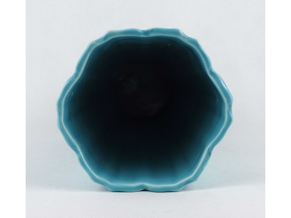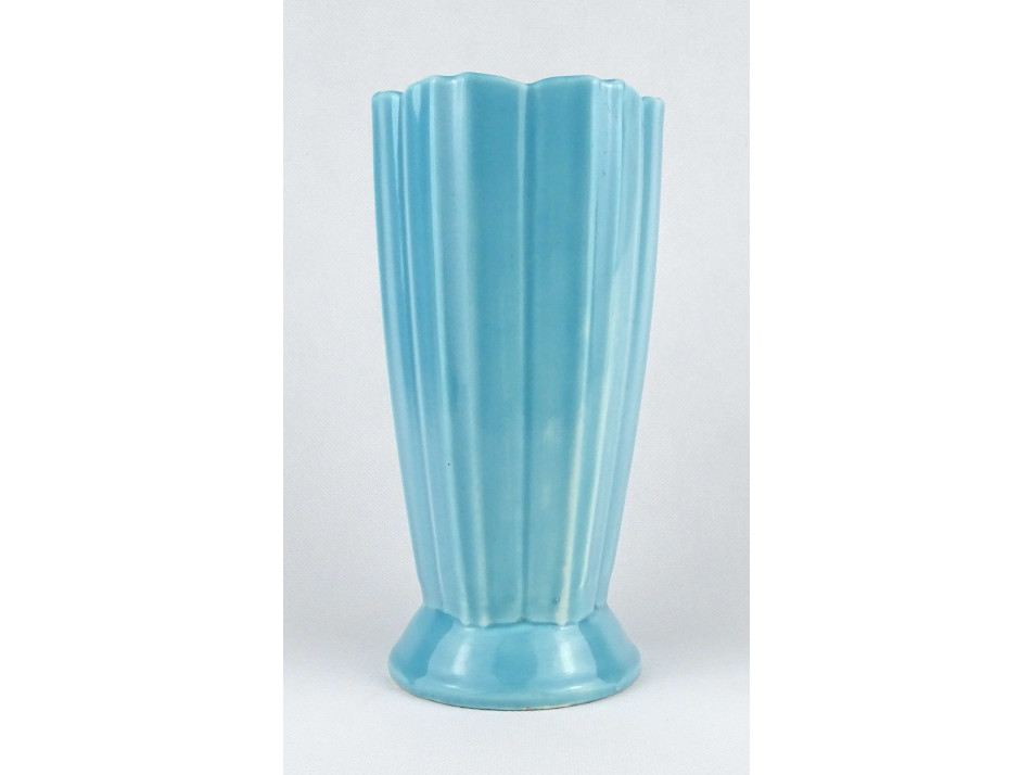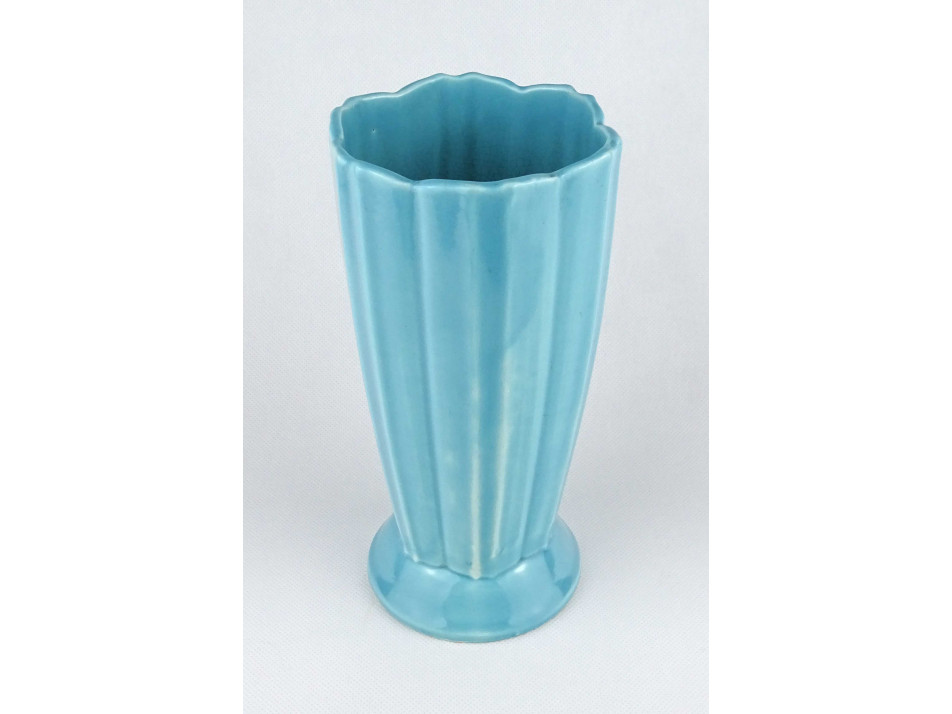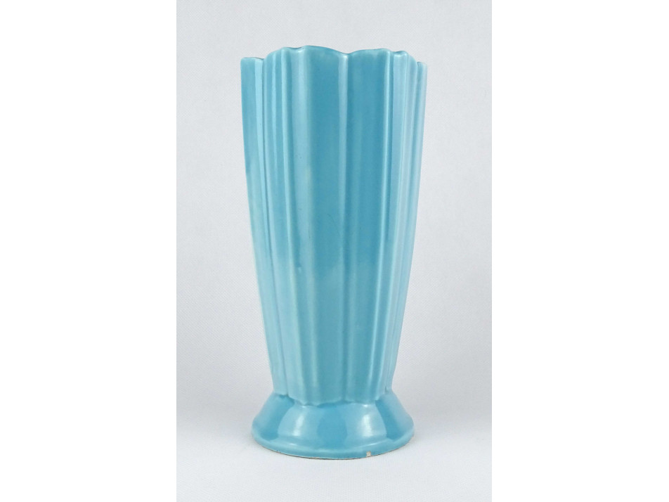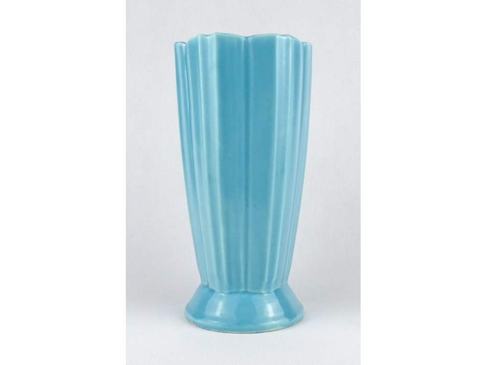 Régi türkiz színű art deco Kispesti formaváza 22.5 cm