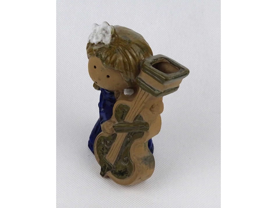 Hibátlan állapotú, jelzetlen, részben mázas, nagybőgőn játszó kislányt ábrázoló kerámia kis váza, szálváza.