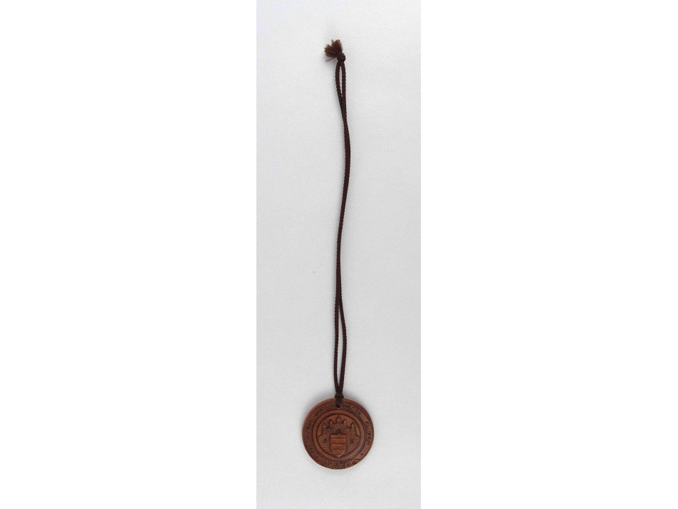 Esztergom címerével díszített domborműves kerámia emlékplakett, emlék medál.