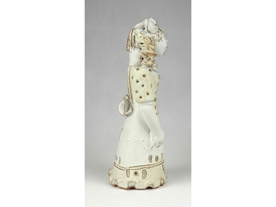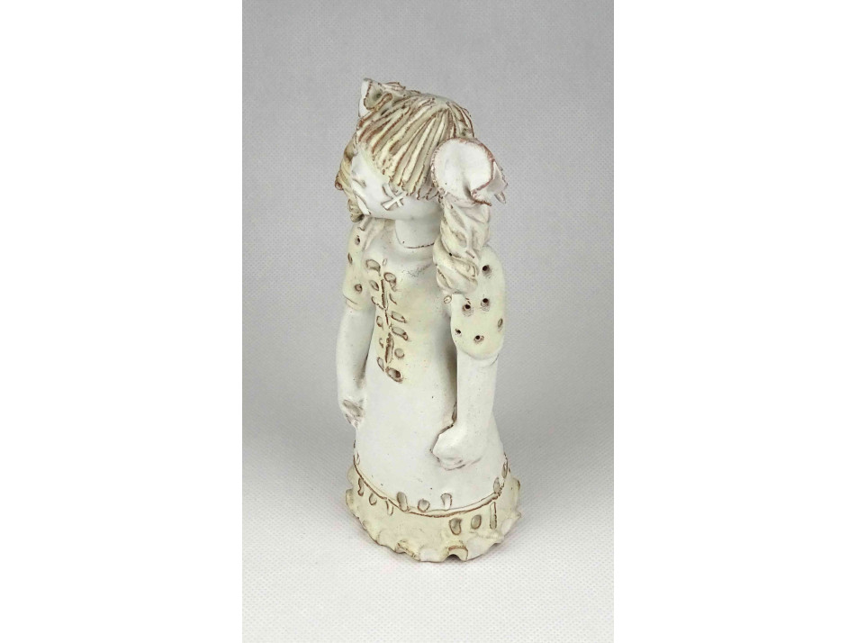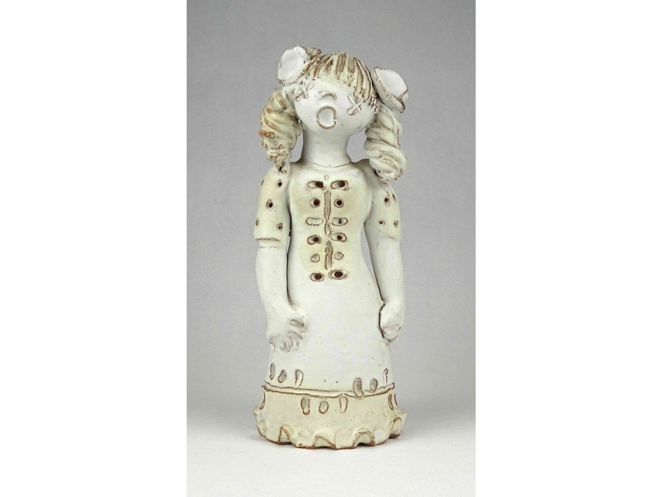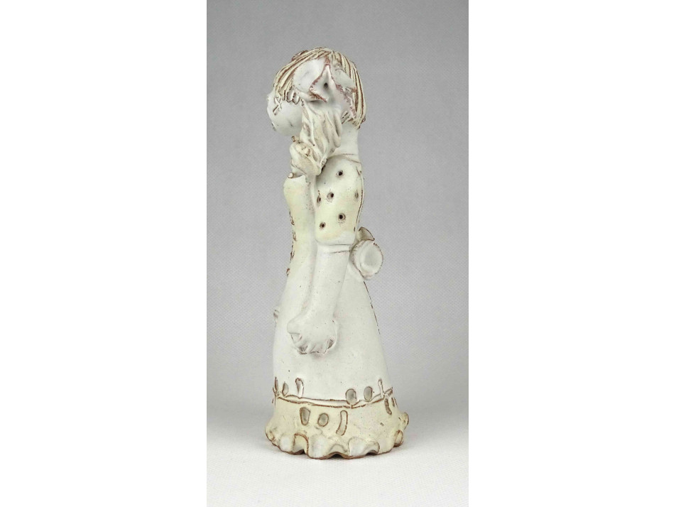 Hibátlan állapotú, jelzett, nagy méretű, fehér mázas, éneklő lány kerámia figura. Hátulján karcolt jelzés. lásd fotó. (Kovács Éva Orsolya)