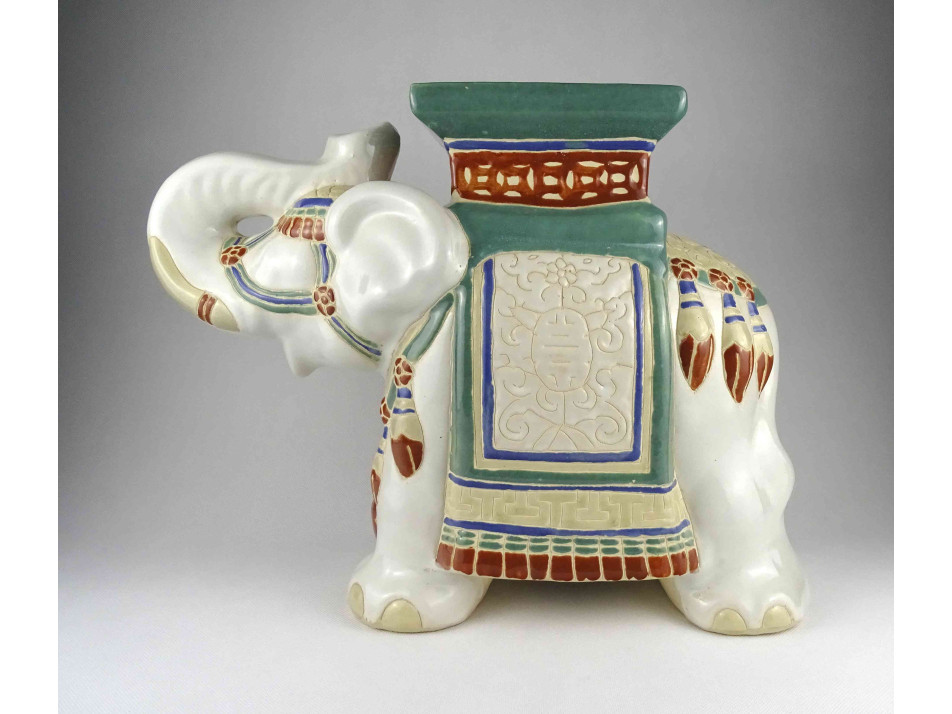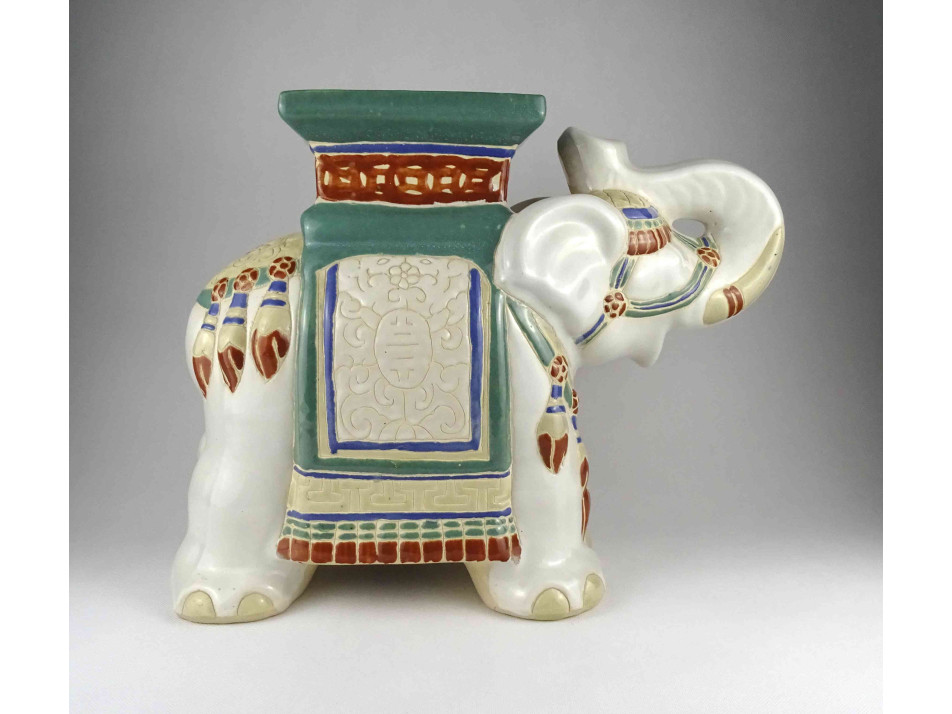 Régi, nagyméretű, domború kínai mintás kerámia elefánt szobor, kaspótartó állvány.