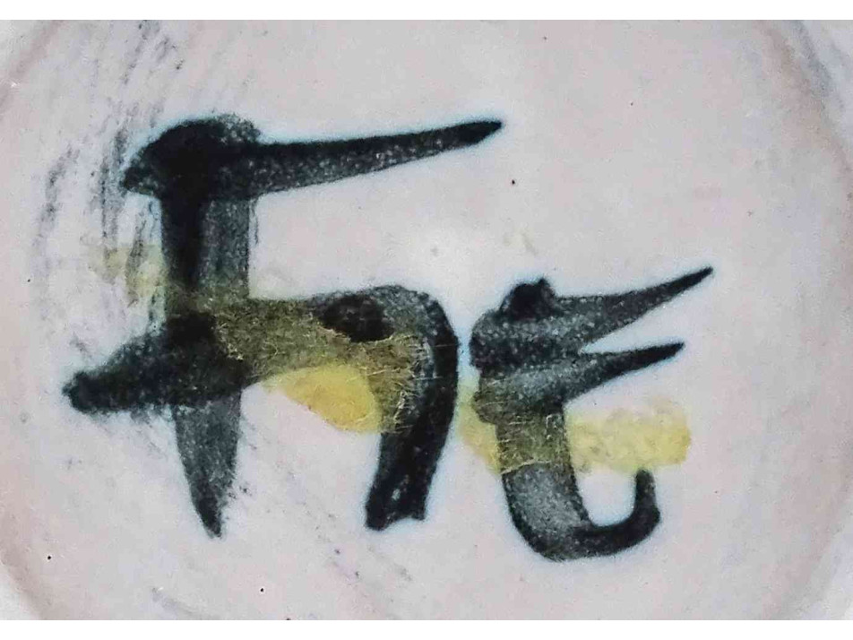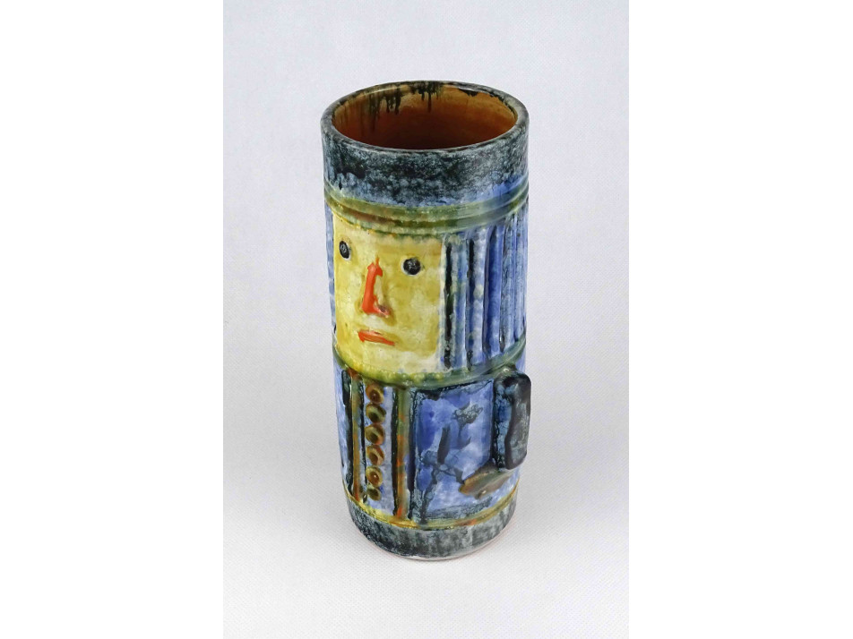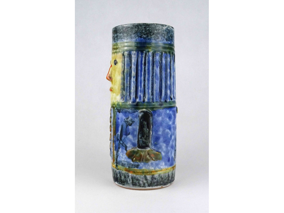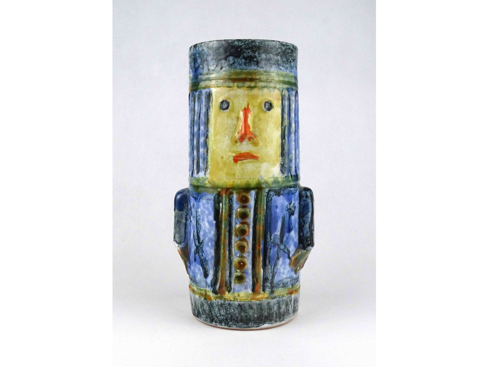 Retro, nagyméretű, jelzett Forizsné Sárai Erzsébet által készített, katonát vagy lovagot formázó mázas kerámia váza.