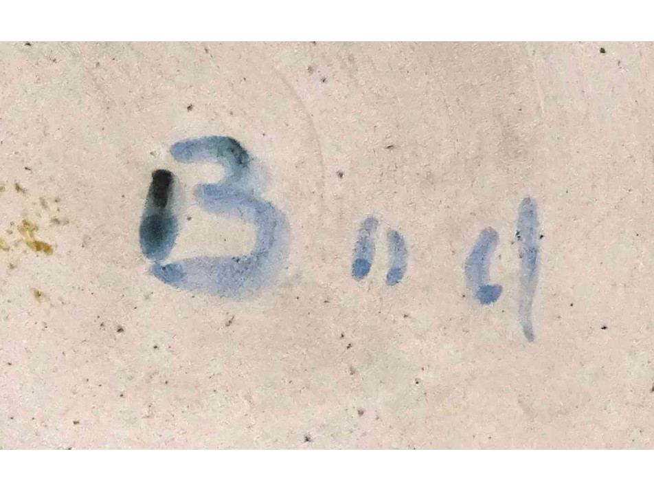Régi részben mázazott kék színű jelzett BOD ÉVA kerámia váza 21 cm