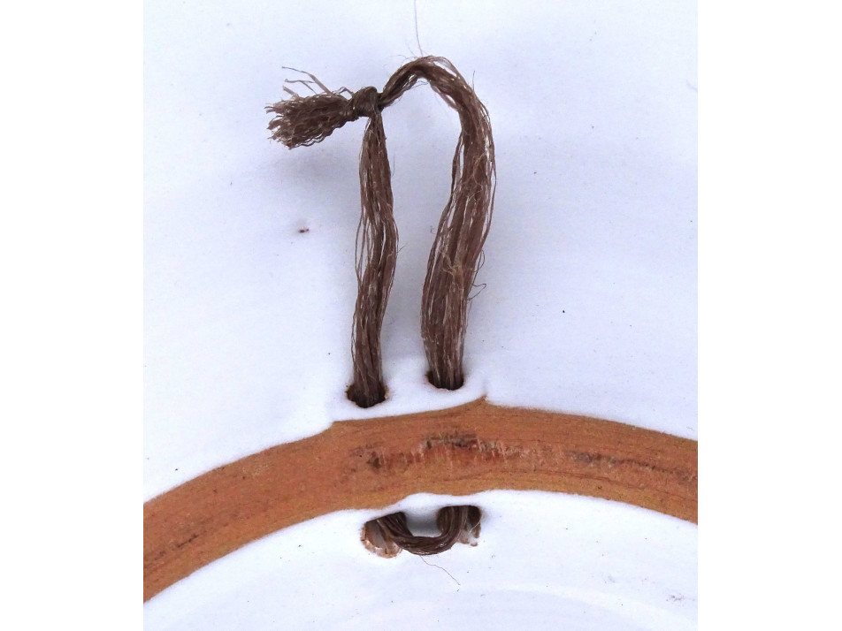 Régi, hibátlan állapotú, nagyméretű, jelzett, fehér mázas, virágdíszes, habán jellegű kerámia dísztányér, falitányér, Akasztási lehetőséggel.