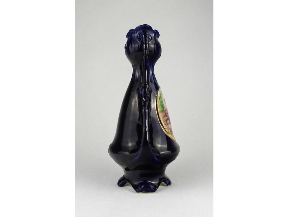 Régi kobaltkék, jelenetes, majolika váza 24.8 cm