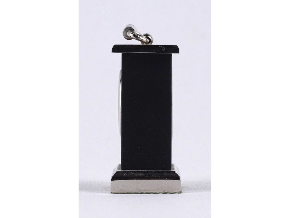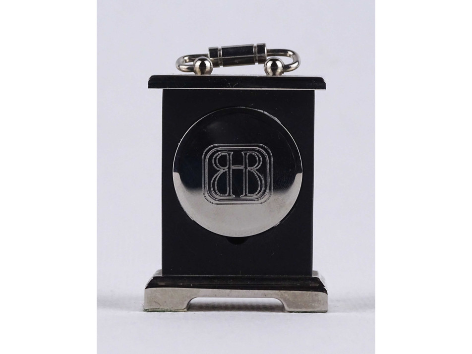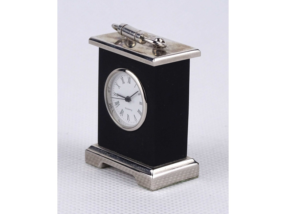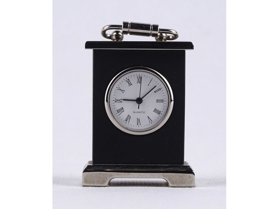 Szép állapotú, a Budapest Bank által korlátozott számban kiadott, fehér számlapos, kisméretű asztali óra. Zsebóraként is használható. Működik!