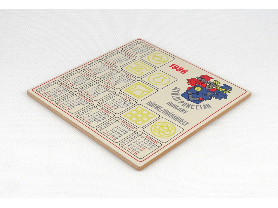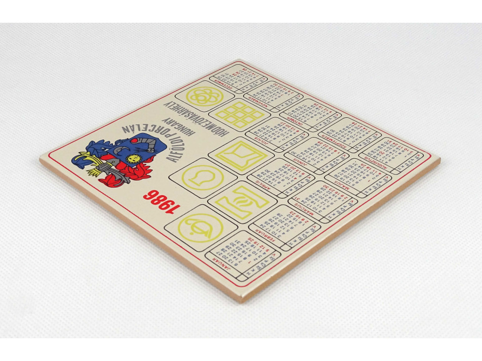 Retro, hibátlan állapotú Alföldi porcelán fali csempe, csempe naptár, falidísz. Feliratok: ALFÖLDI PORCELÁN HUNGARY HÓDMEZŐVÁSÁRHELY 1986
