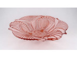 Nagyméretű, lazacszínű art deco üveg asztalközép, gyümölcskínáló tál