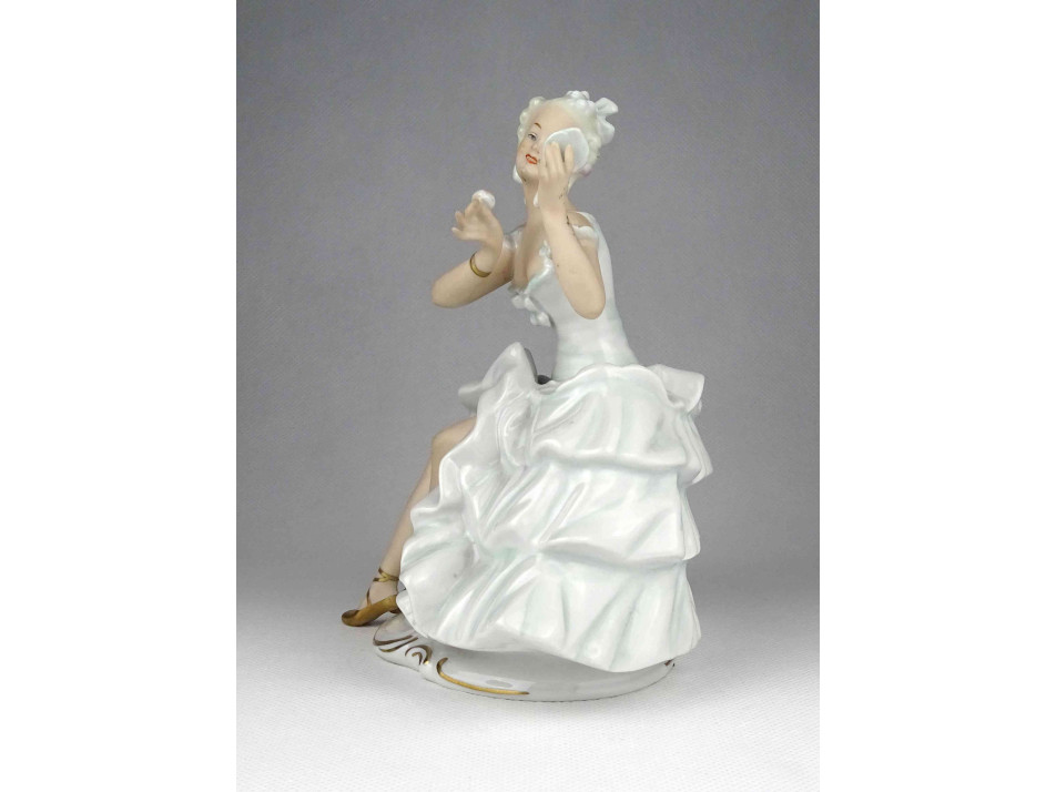 Régi SCHAUBACH KUNST porcelán figura - sminkelő táncosnő