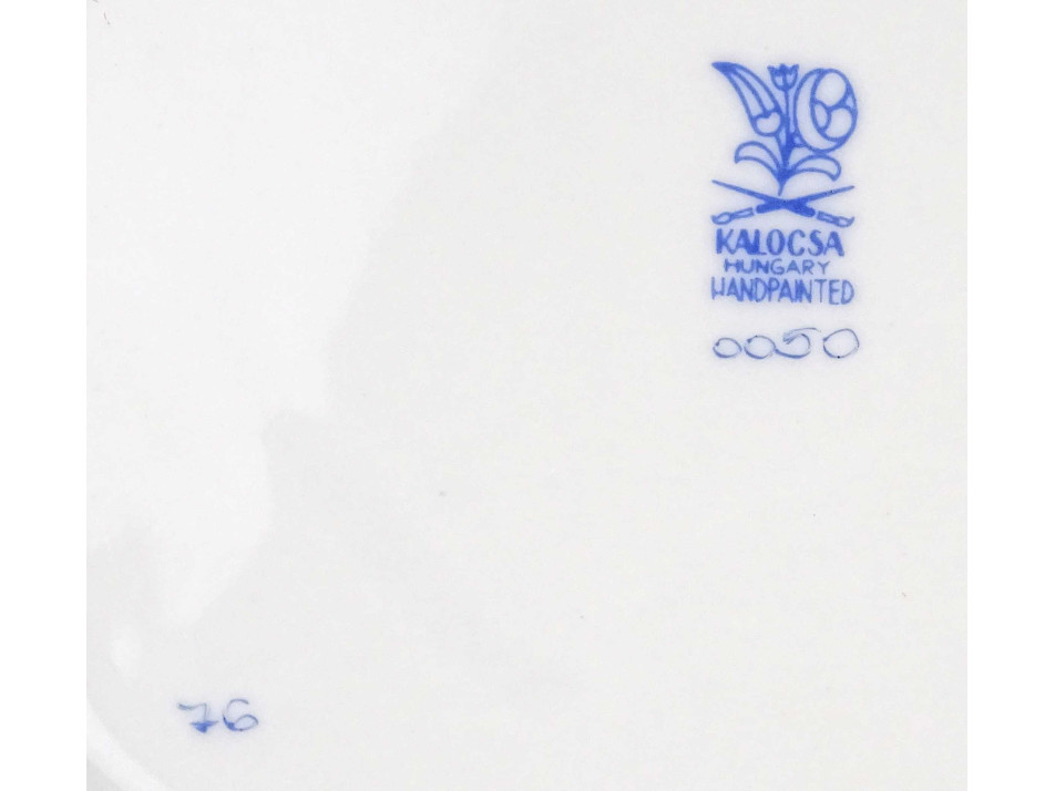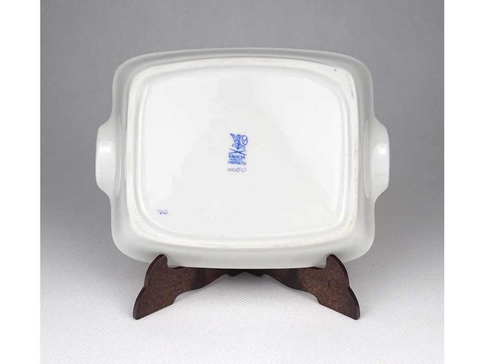 Hibátlan állapotú, kézi festéssel díszített, aranyozott szélű, kalocsai mintás, porcelán hamutál, hamus.