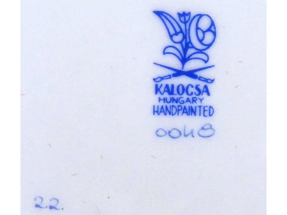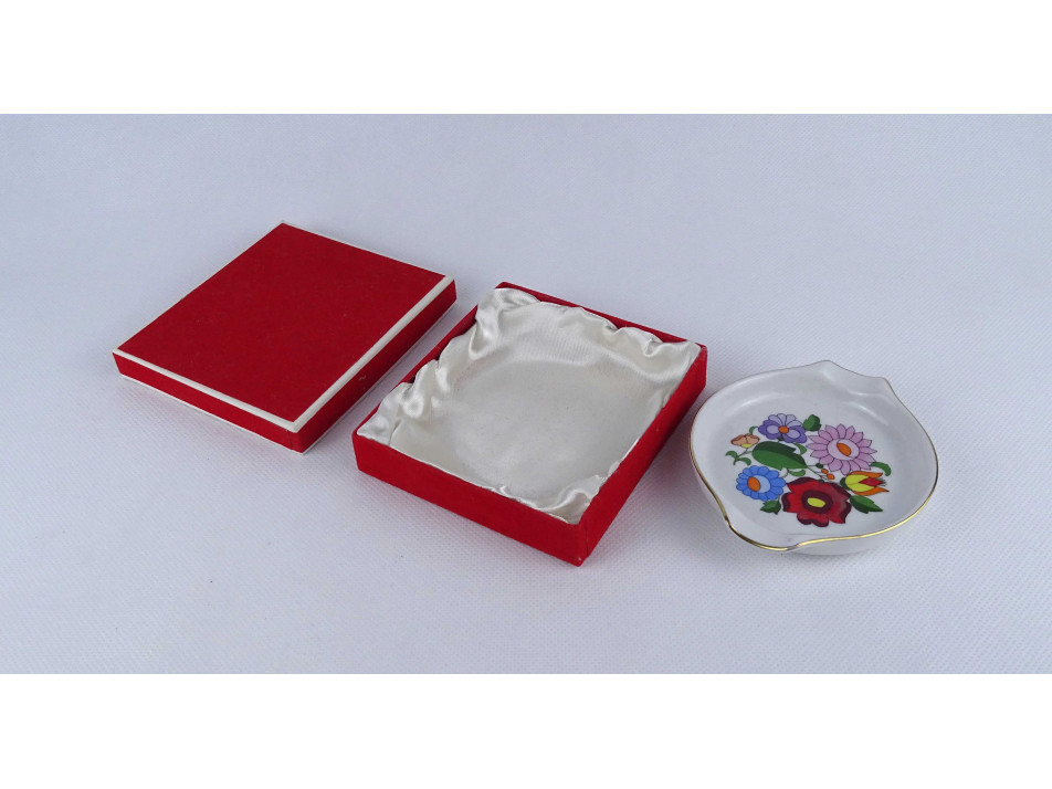 Kalocsai mintás porcelán hamutál díszdobozban