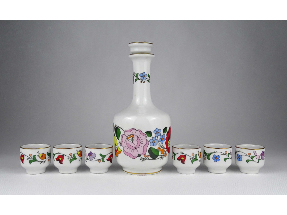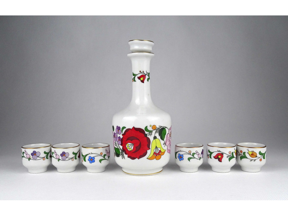 Hibátlan állapotú, kalocsai mintás porcelán pálinkás készlet.