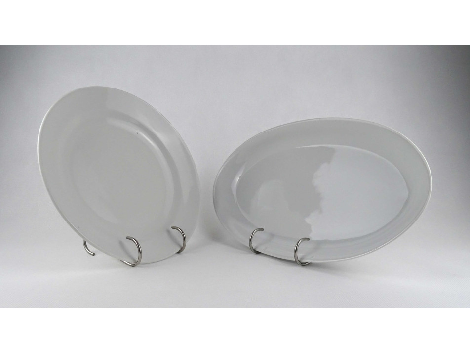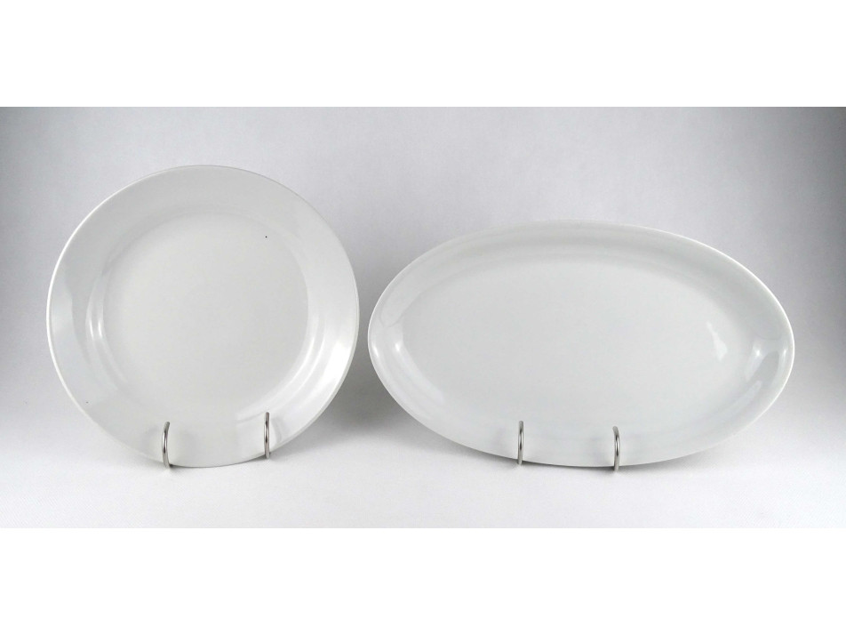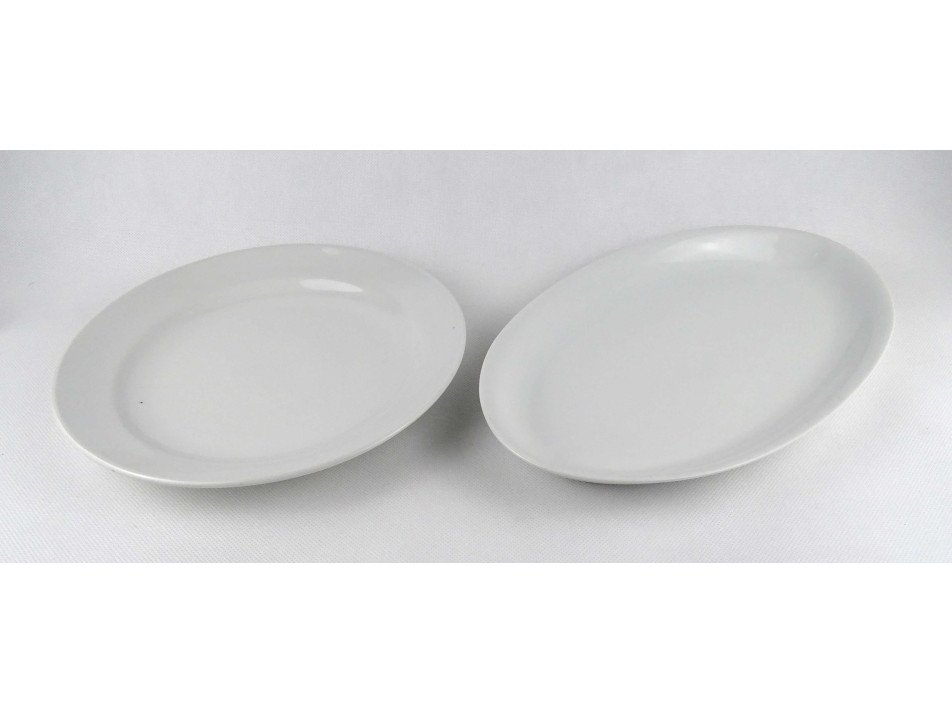 Retro, hibátlan állapotú, festetlen porcelán kínáló tál, húsos tál pár. Egy kör és egy ovális alakú tál egyben.
