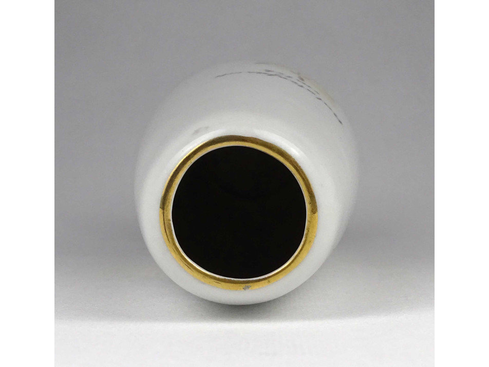 Hibátlan állapotú, jelzett, BALATONFÜREDI EMLÉK feliratú Aquincum porcelán váza, kézi festéssel készült nőalakkal és arany szegéllyel díszítve.